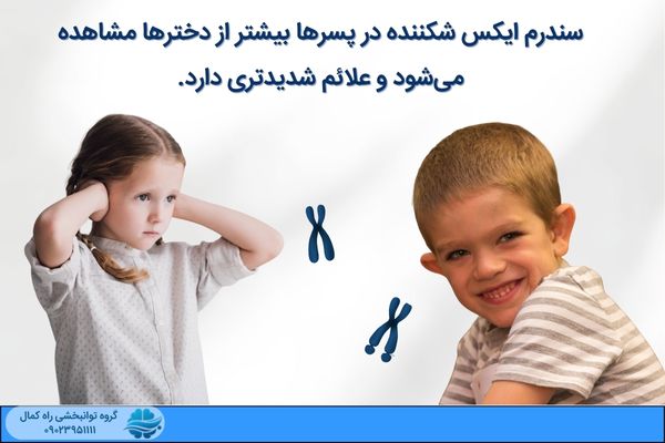 سندرم ایکس شکننده در پسرها بیشتر از دخترها رخ میدهد؛ زیرا آنها تنها یک کروموزوم X دارند. علائم آنها نیز شدیدتر است. دخترها دو کروموزوم X دارند. این بیماری ممکن است هر دو کروموزوم X را تحت تأثیر قرار ندهد. بنابراین، دختران میتوانند حامل باشند ولی علائمی نشان ندهند، اما پسران مبتلا به X شکننده همیشه علائم خواهند داشت.